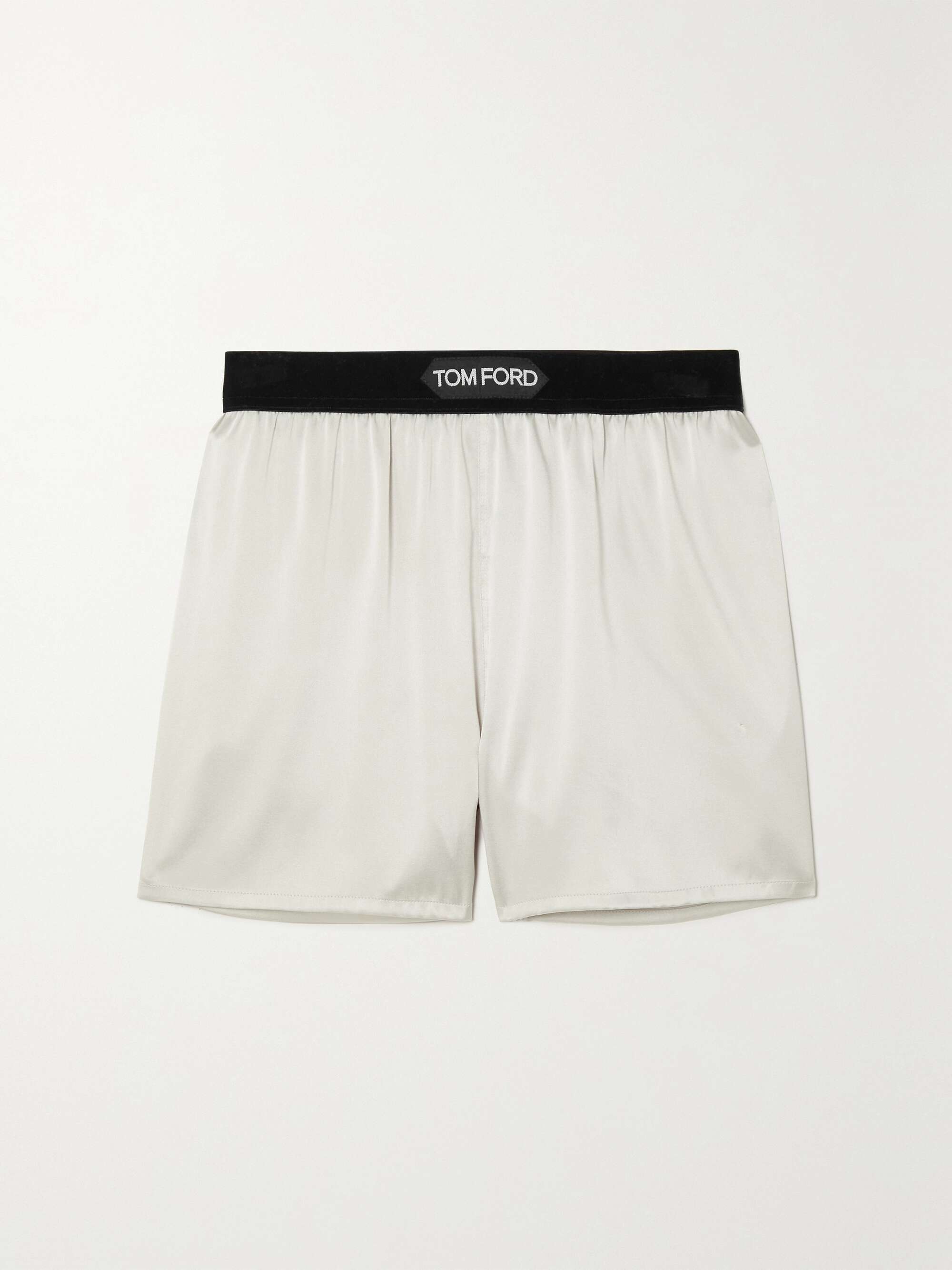 Platinum Velvet Trimmed Stretch Silk Satin Shorts Tom Ford Net A Porter